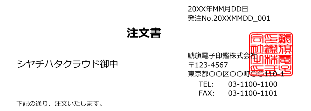 角印を押す位置として一般的なのは、会社名や住所の「右側」に少し文字が被るように押すスタイルです。たとえば、見積書や請求書の発行者情報の右横に、少し文字にかかるような形で角印を配置します。
